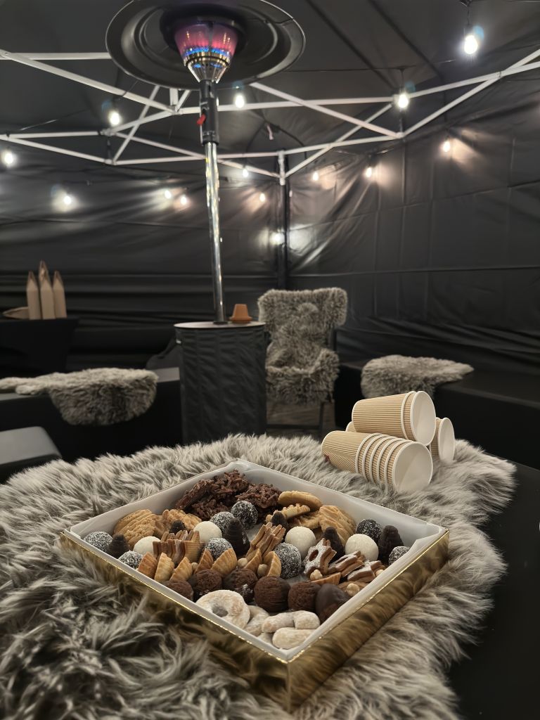 Tento vytápěný stan o ploše 200 m² je ideální pro samostatné akce do 200 osob nebo jako doplňkový prostor. Apres Ski mood s dřevěnými prvky vytváří útulnou atmosféru pro neformální setkání. Stan má vlastní výčep, kde je zaveden Plzeňský Prazdroj z tankovny a pivo je podáváno do skla. Je maximálně přizpůsobitelný pro váš branding a catering.