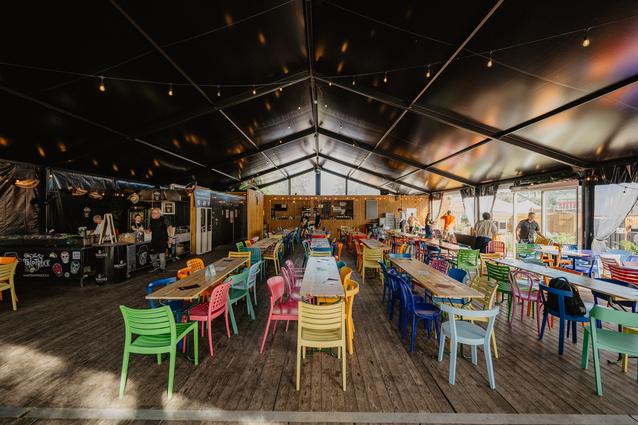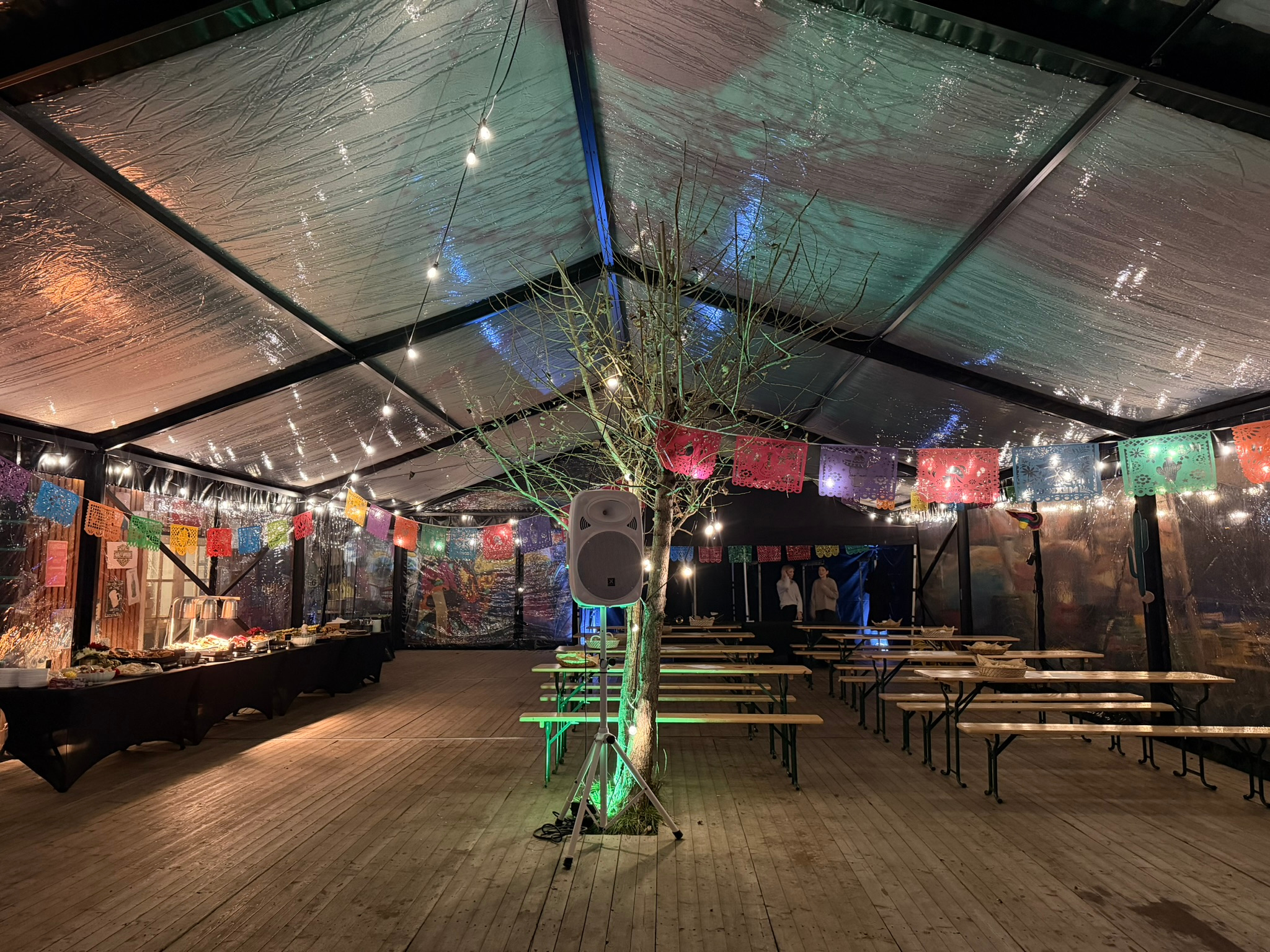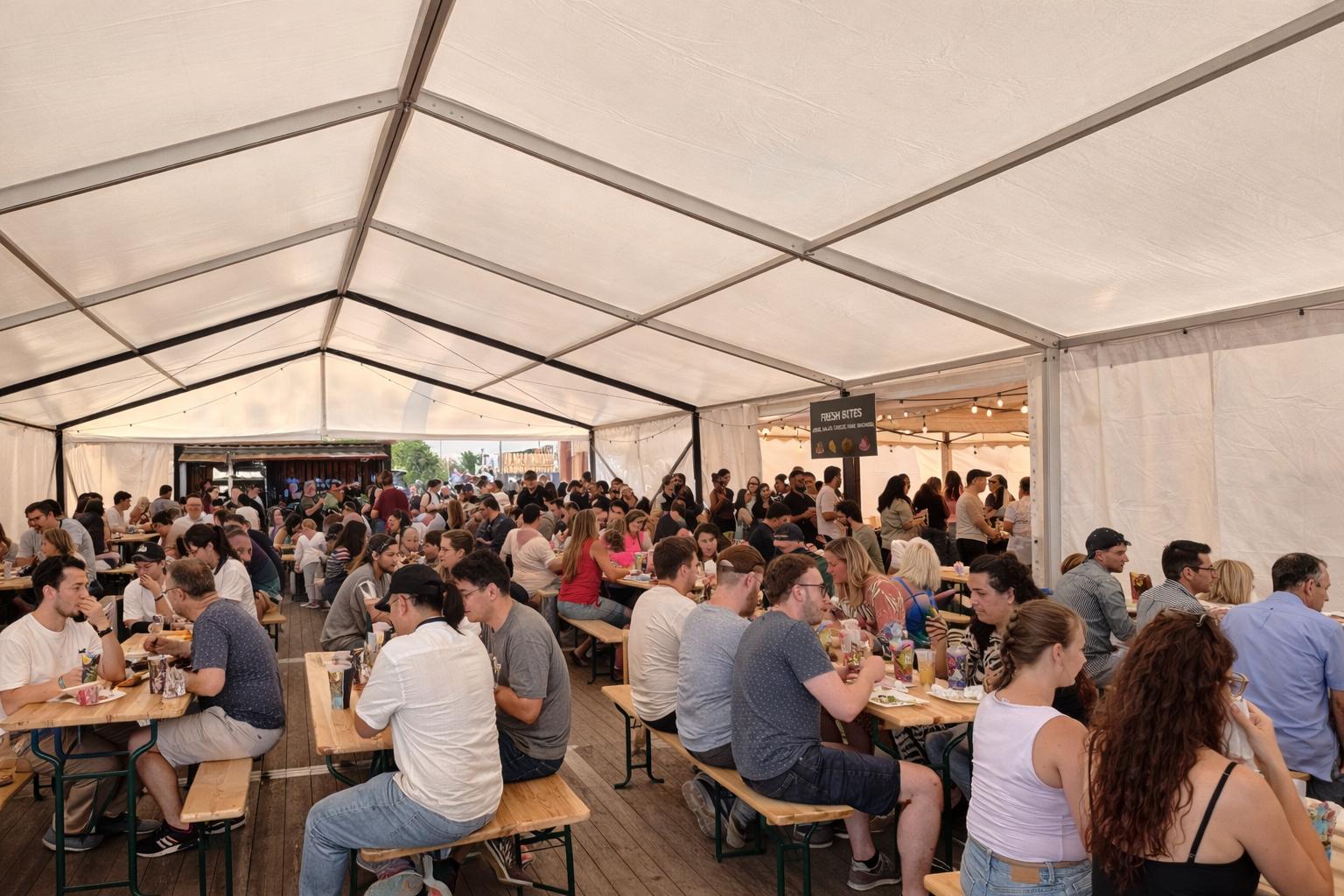 Náš největší, centrálně umístěný, vytápěný stan o rozloze 600 m² je ideální pro hlavní část vaší akce. S kapacitou až 450 osob pojme celou vaši firmu, ať už plánujete konferenci, galavečer nebo velký vánoční večírek. Stan je přímo propojen s hlavním výčepem, kde je zaveden Plzeňský Prazdroj z tankovny, spolu s craftovými pivy z Počernáku, vše čepované do skla. Maximální přizpůsobení interiéru je samozřejmostí.
